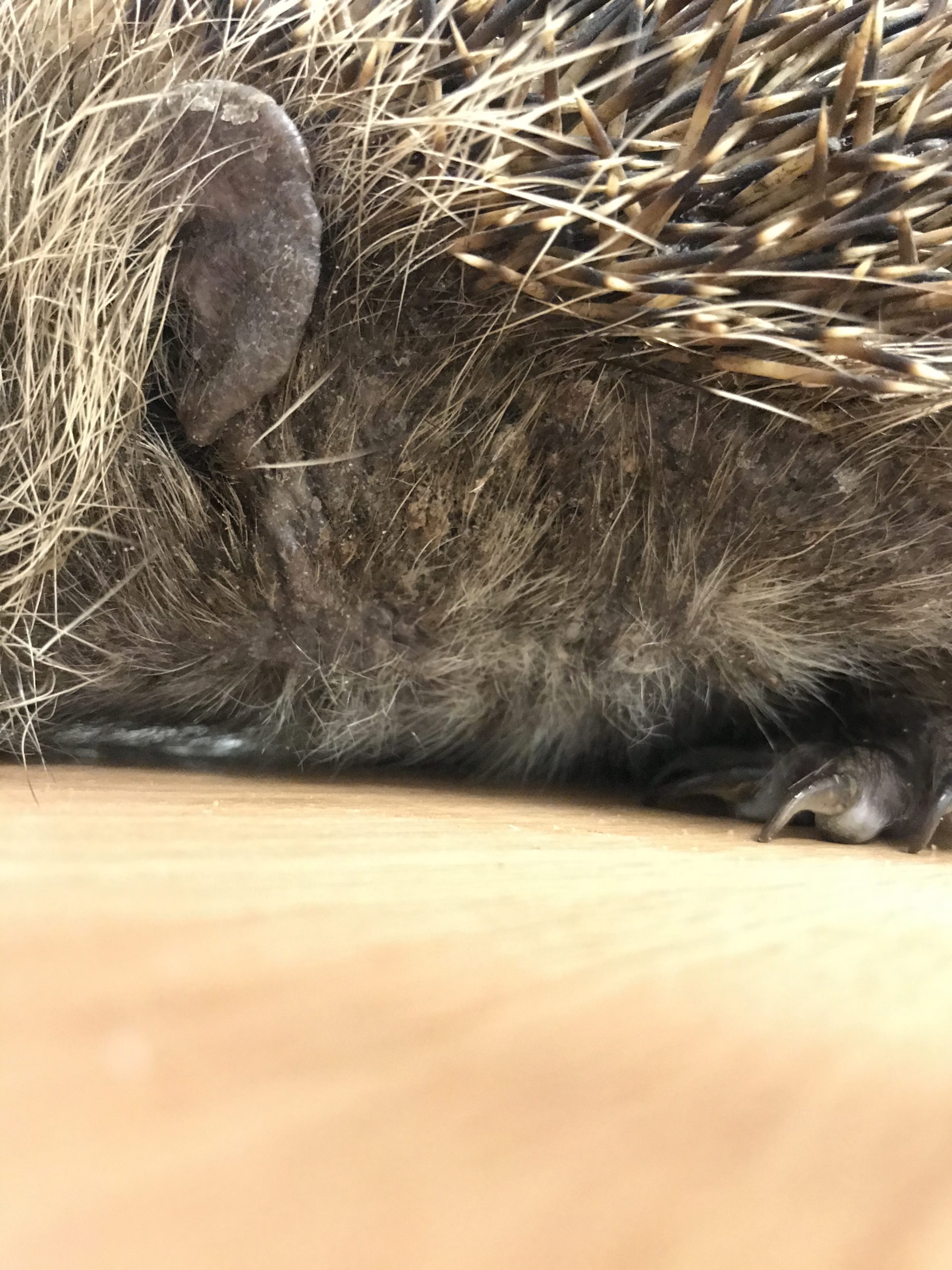As well as hedgehogs suffering with endoparasites, we are seeing a large number of hedgehogs coming through our doors that have a condition called mange. Mange is caused by mites that burrow into the skin and cause the hedgehog to have crusty lesions on the skin. Hedgehogs often suffer from ringworm simultaneously to mange, and they present with similar symptoms. To diagnose a hedgehog for mange, we can take skin scrapes from them and view these under the microscope. This particular hedgehog in the image was brought into us on Friday 29th January after the finder had seen him on her night vision camera constantly itching. The video shows the mange mites from this hedgehog under the microscope – no wonder he was scratching a lot! He is now on a course of treatment to clear this up and is in isolation as it is highly contagious to other hedgehogs.